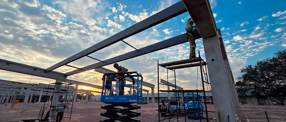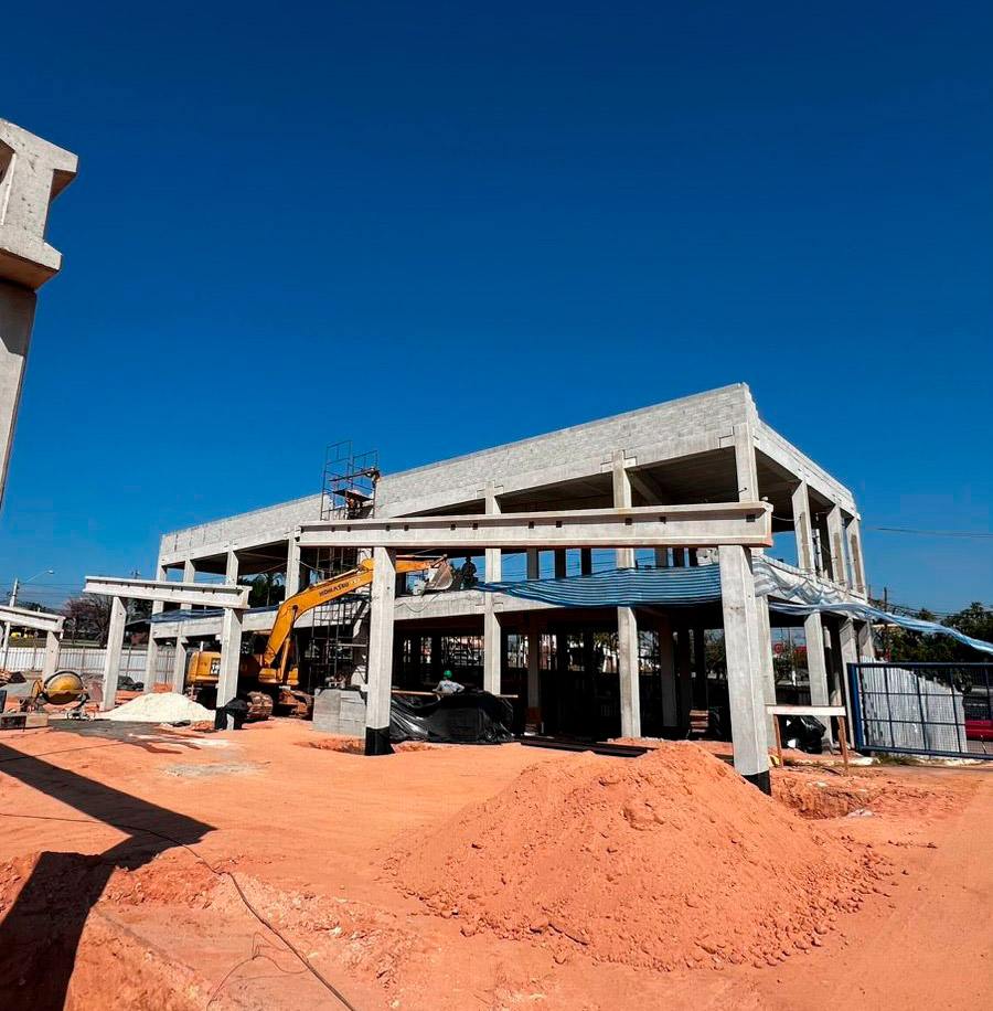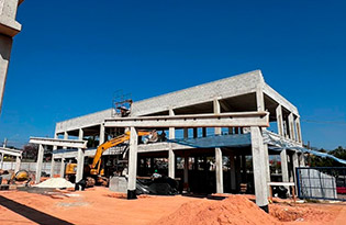 Execução de edifício garagem e cobertura de estacionamento em peças pré-moldadas e estrutura metálica na Sede do DAE JUNDIAÍ