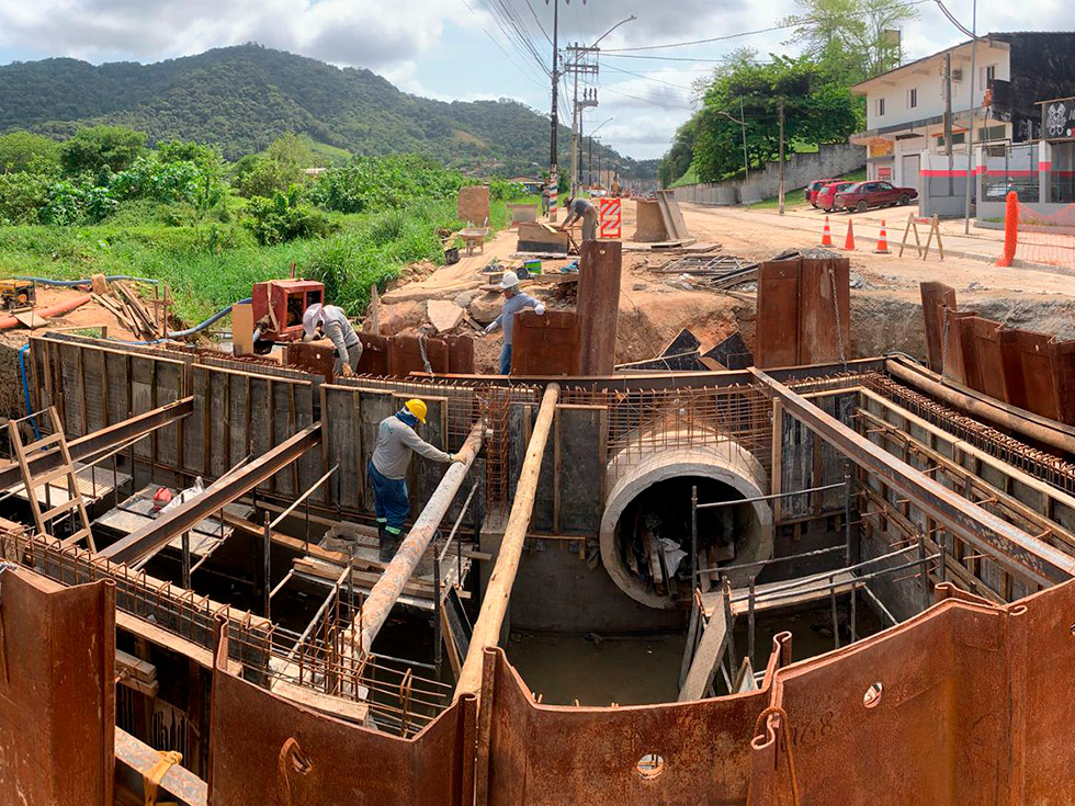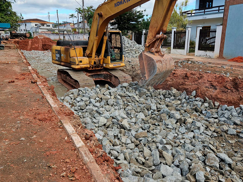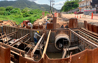 Execução do sistema de macrodrenagem e contenção em gabião do córrego localizado próximo à Avenida Brasil