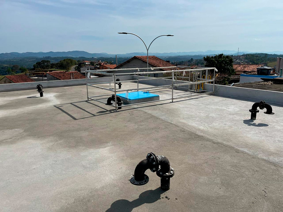 Recuperação Estrutural, Impermeabilização, Pintura de Reservatório, com volume de 5.000m³ - Construção de Casa de Bombas