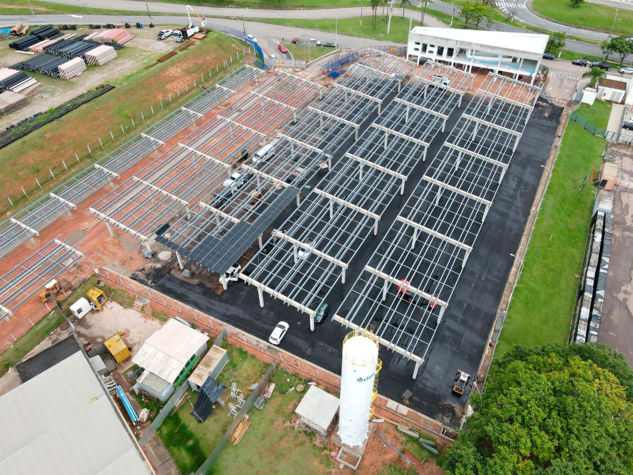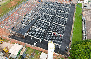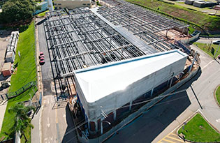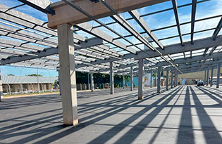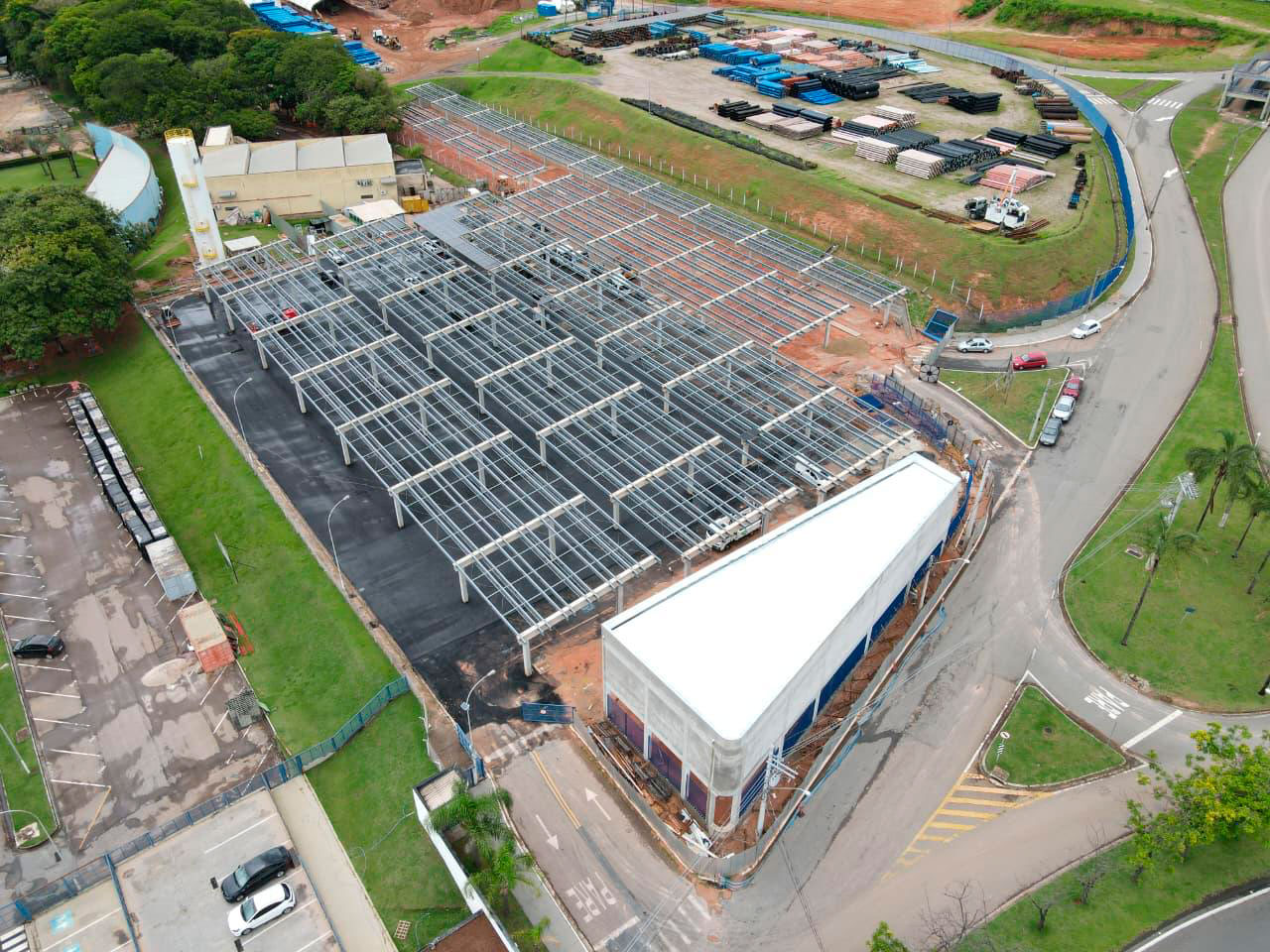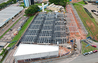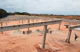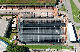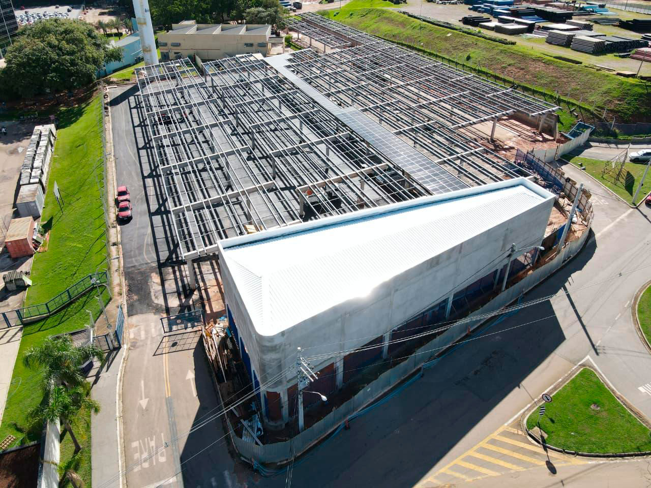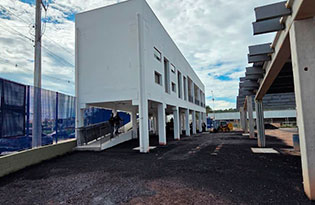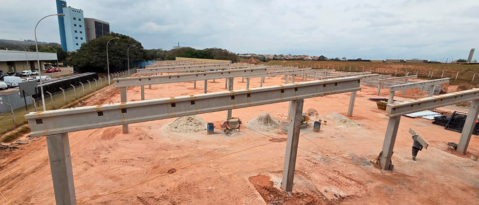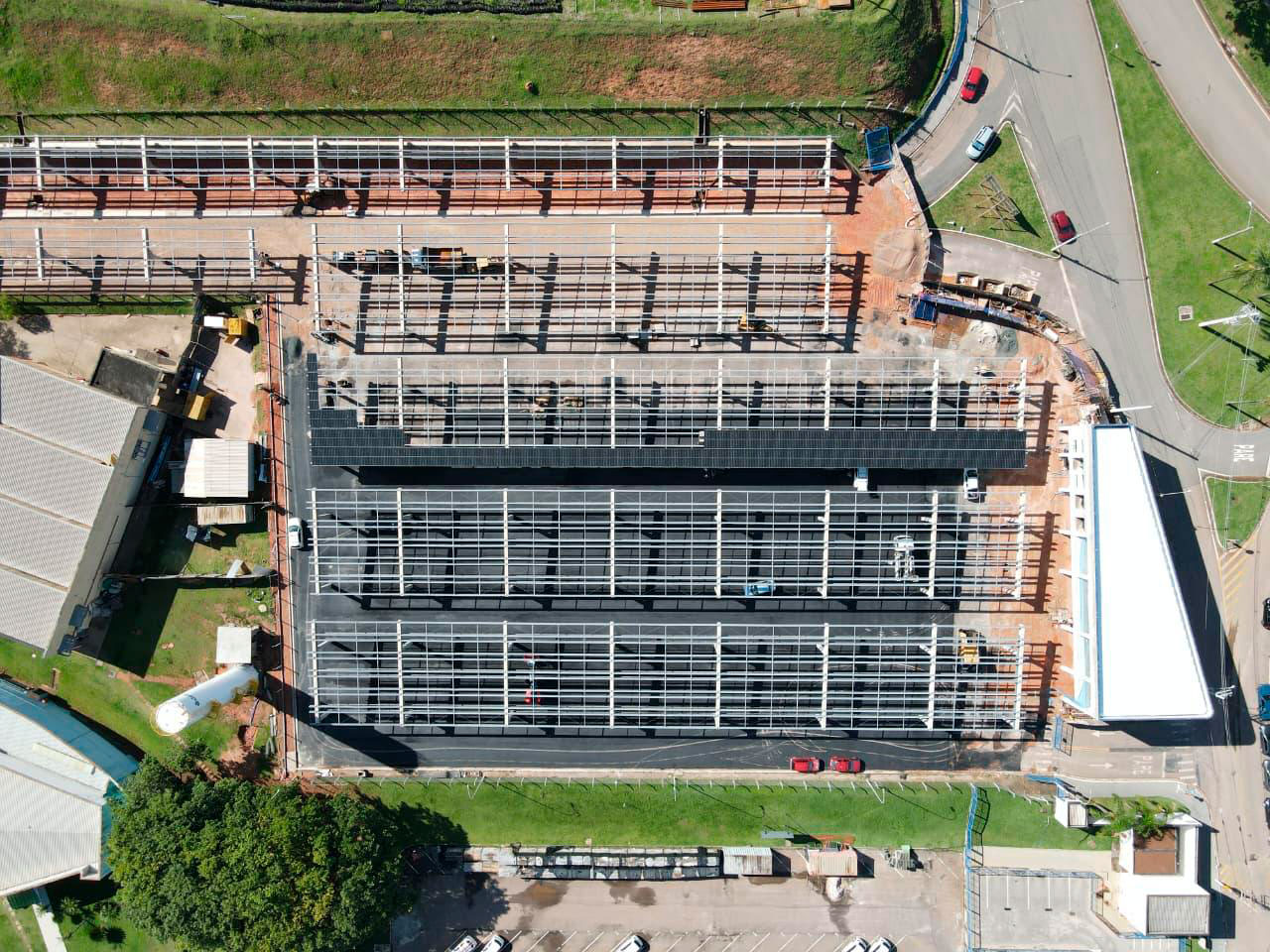 Execução de edifício garagem e cobertura de estacionamento em peças pré-moldadas e estrutura metálica na Sede do DAE JUNDIAÍ