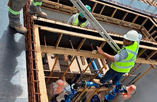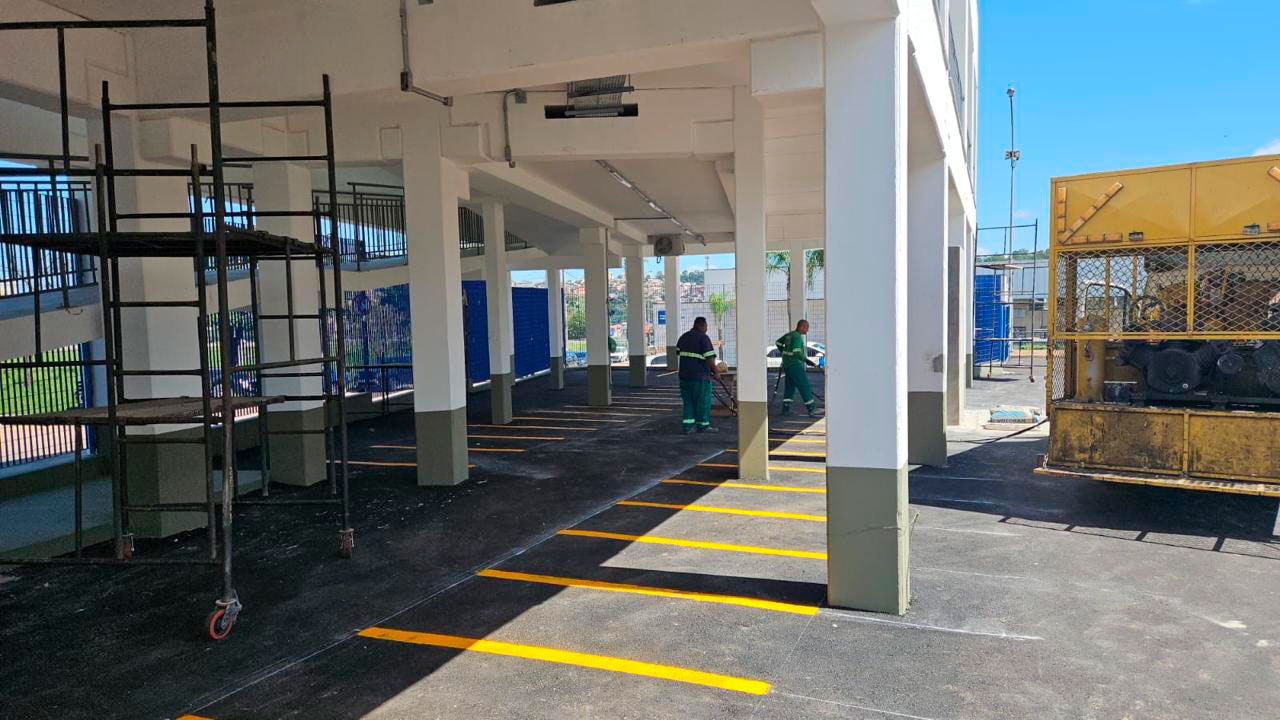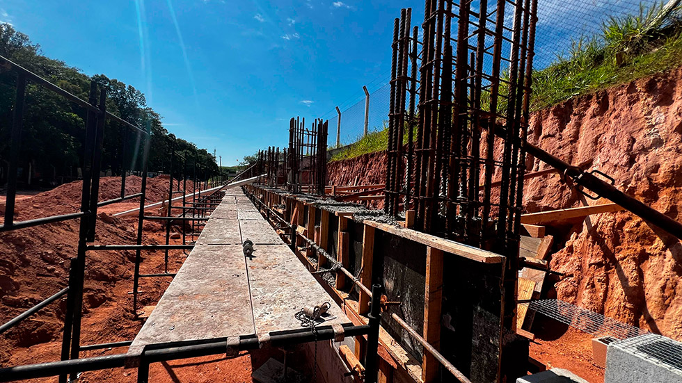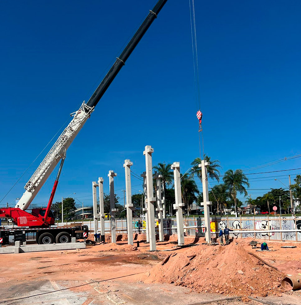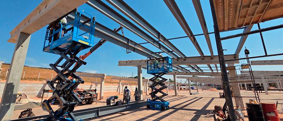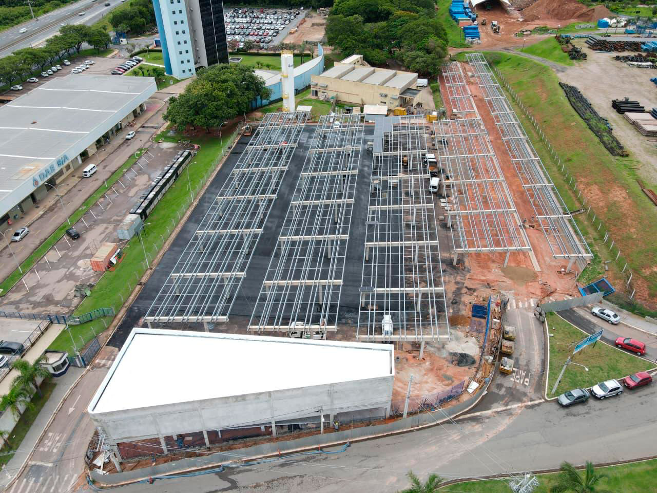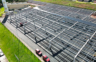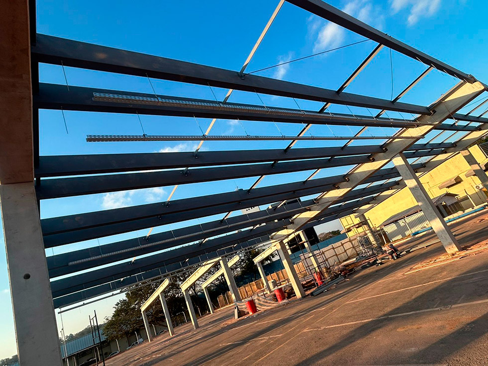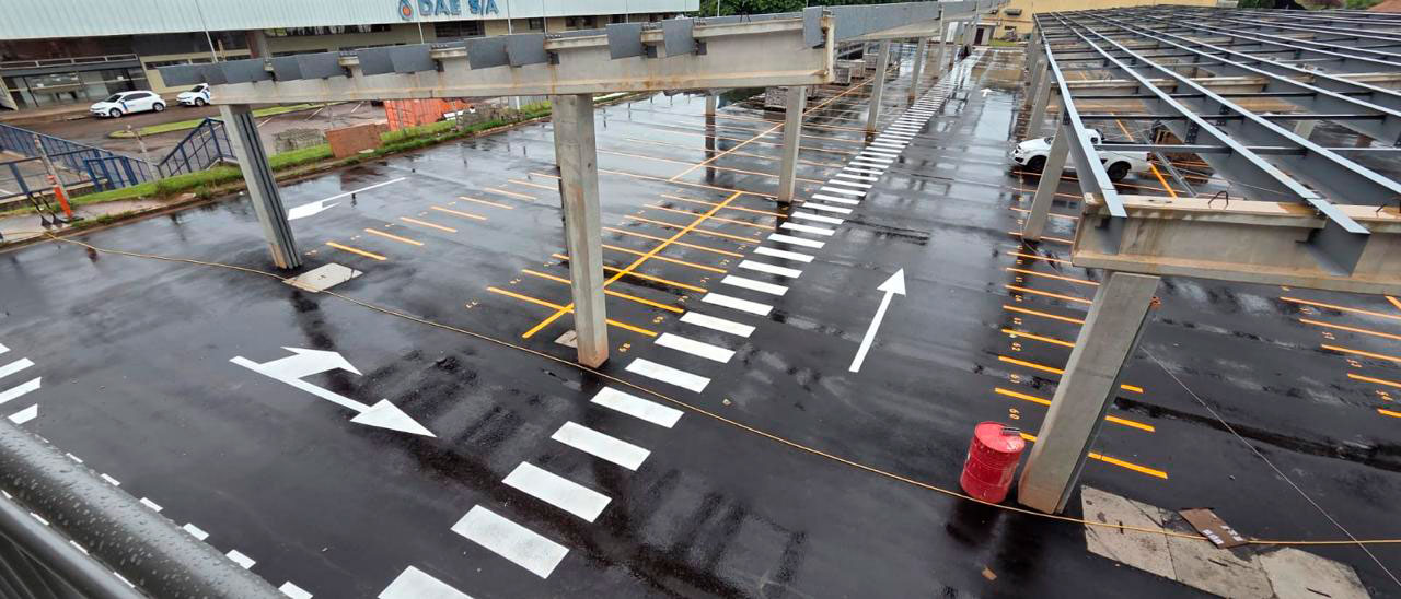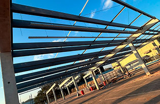 Execução de edifício garagem e cobertura de estacionamento em peças pré-moldadas e estrutura metálica na Sede do DAE JUNDIAÍ