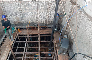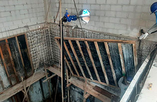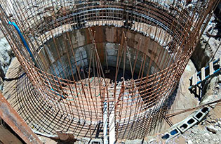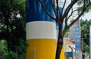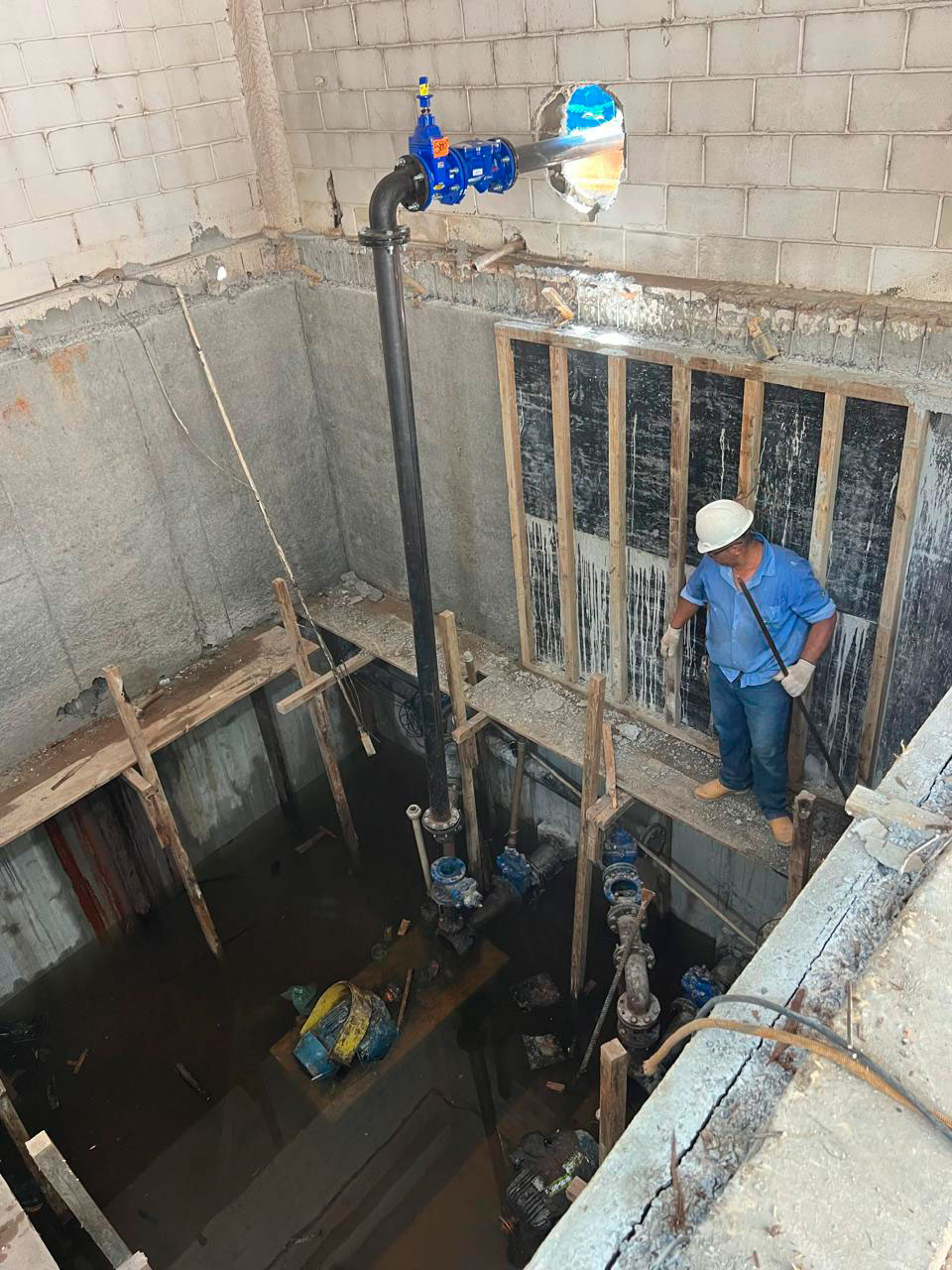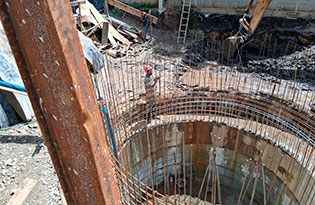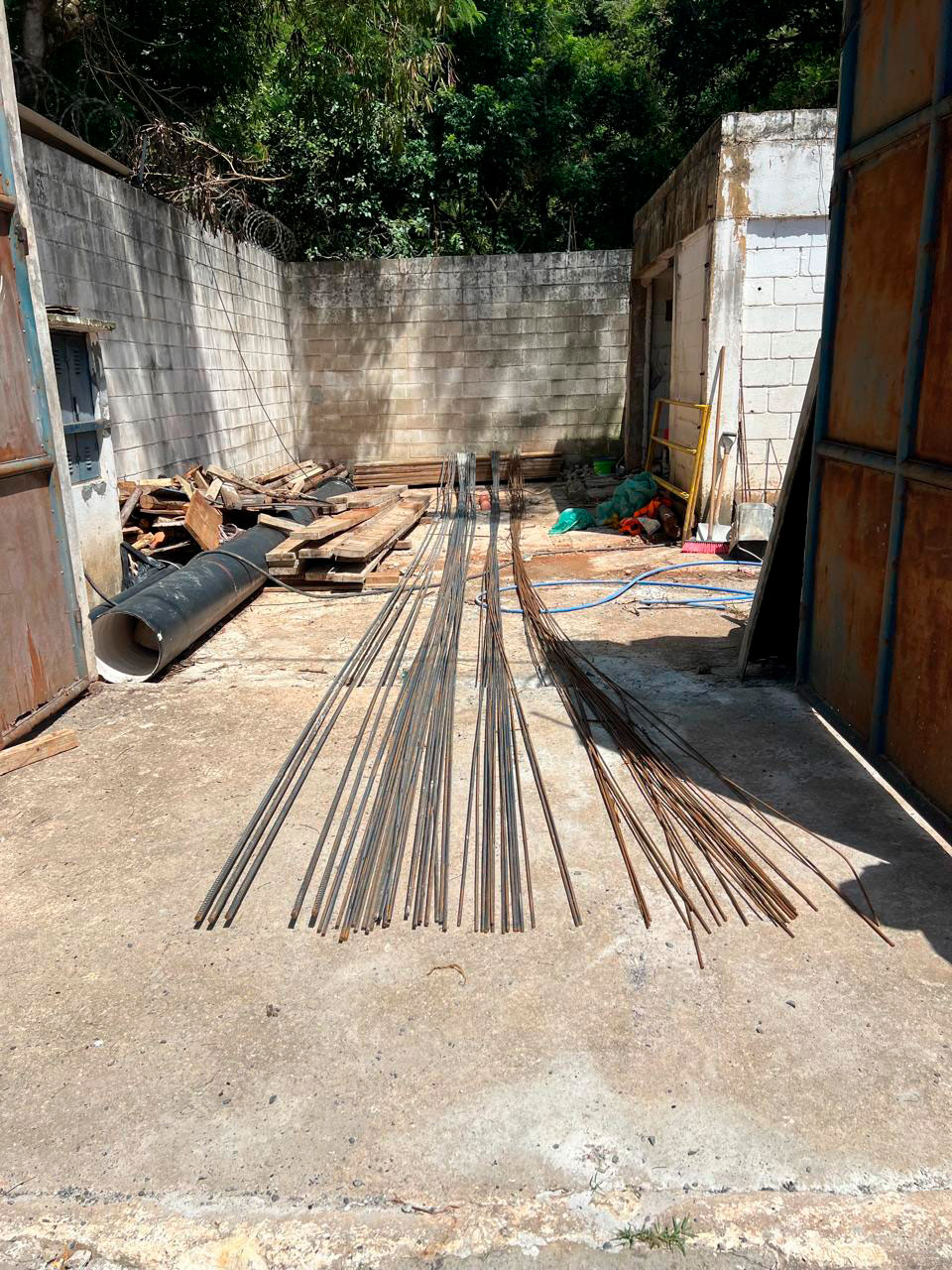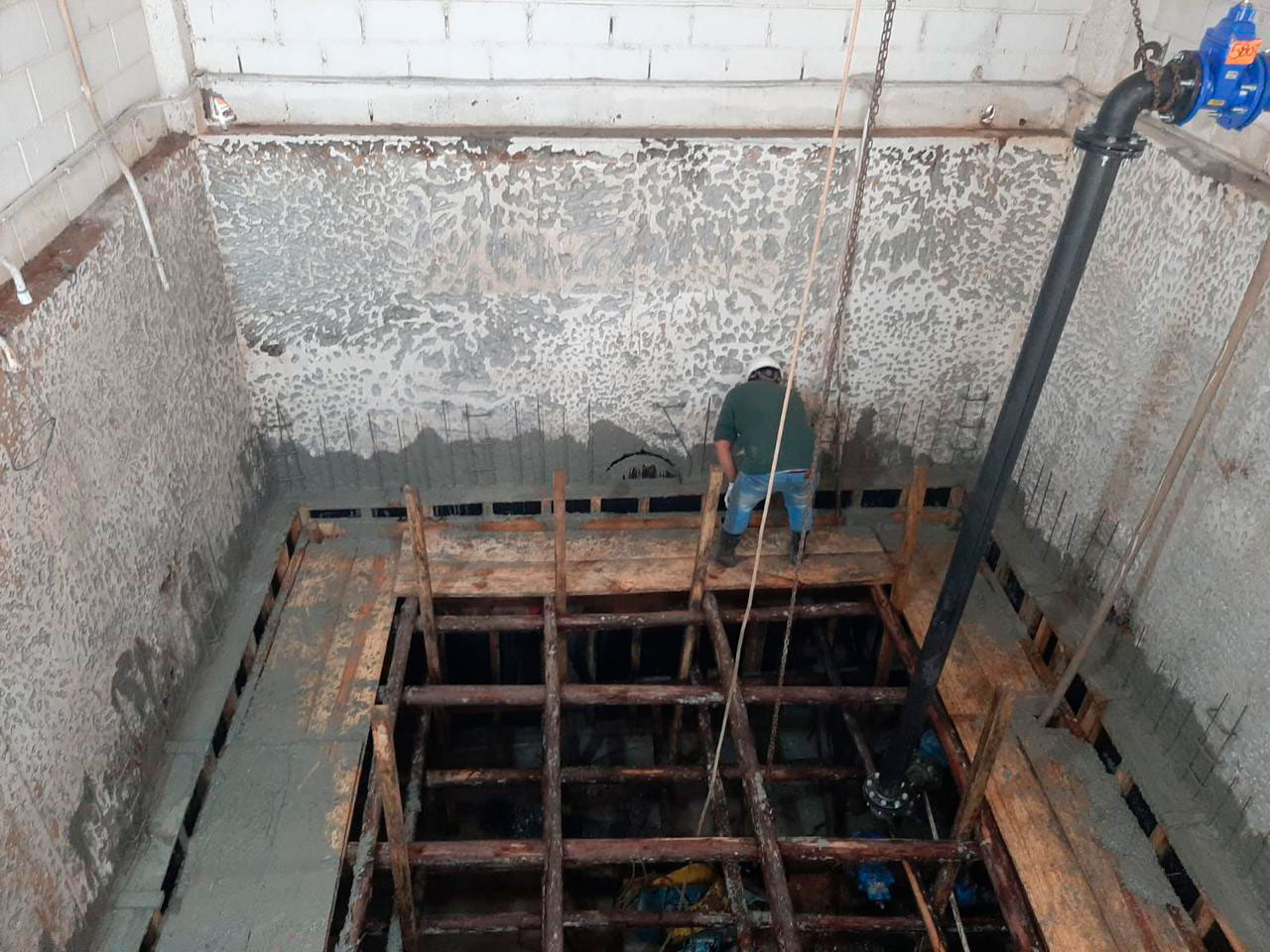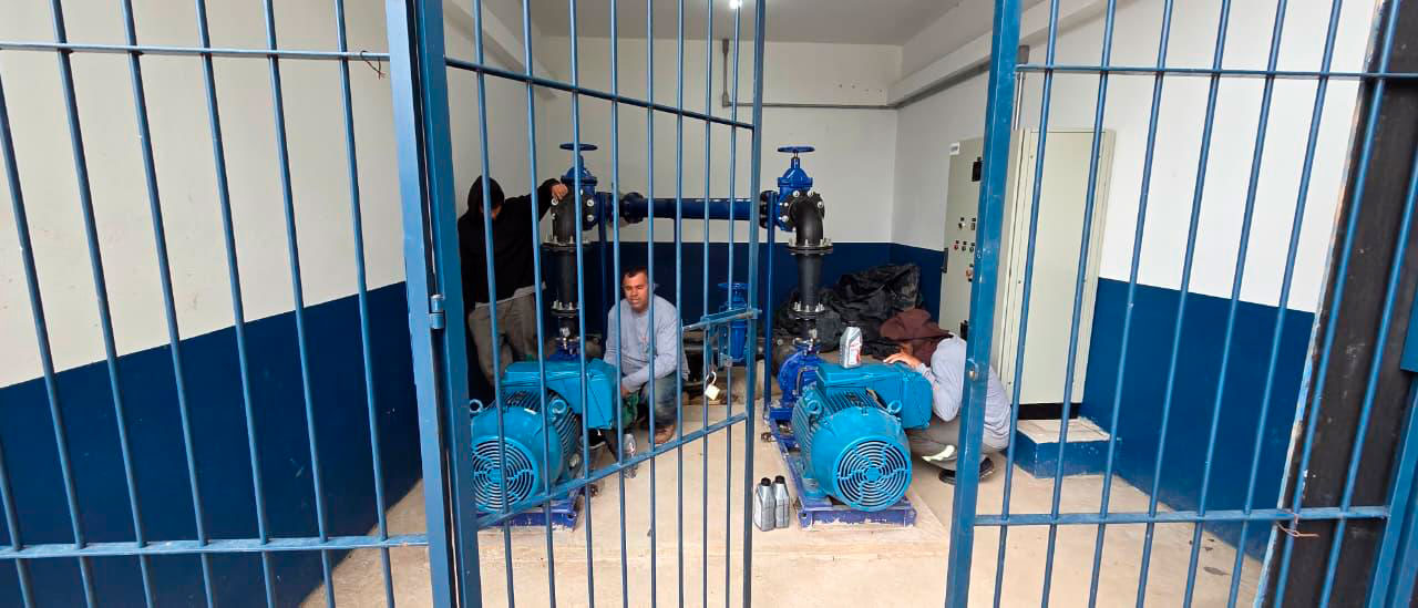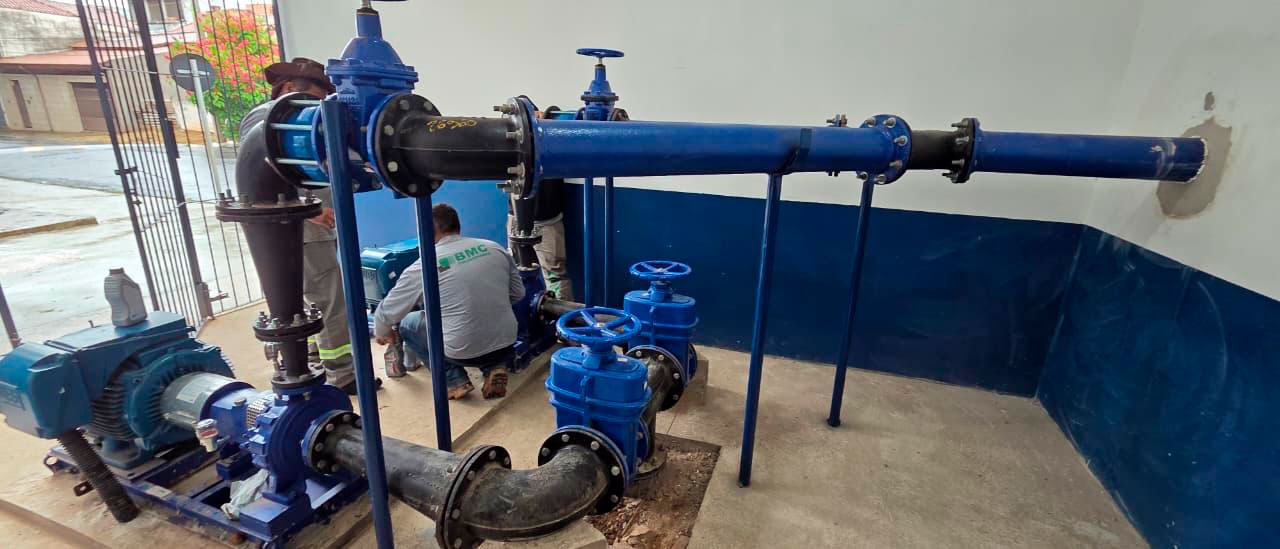 Rede de recalque, sistema de bombeamento e construção de duas bases individualizadas em concreto armado para dois reservatórios metálicos fundo chato com capacidade de 60m³ cada e construção de casa de bombas