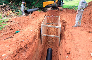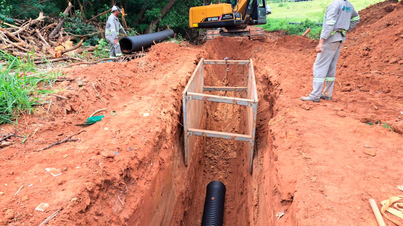 Elaboração de projeto executivo e execução de obras para implantação de estações elevatórias de esgoto bruto, EEEB César de Souza (Catarina), EEEB Beija Flor, EEEB JD São Pedro e execução do recalque em MND