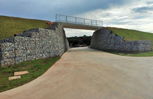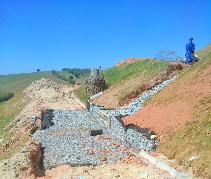 Execução de contenções em gabião e rede em ferro fundido flangeado com Ø 600 mm